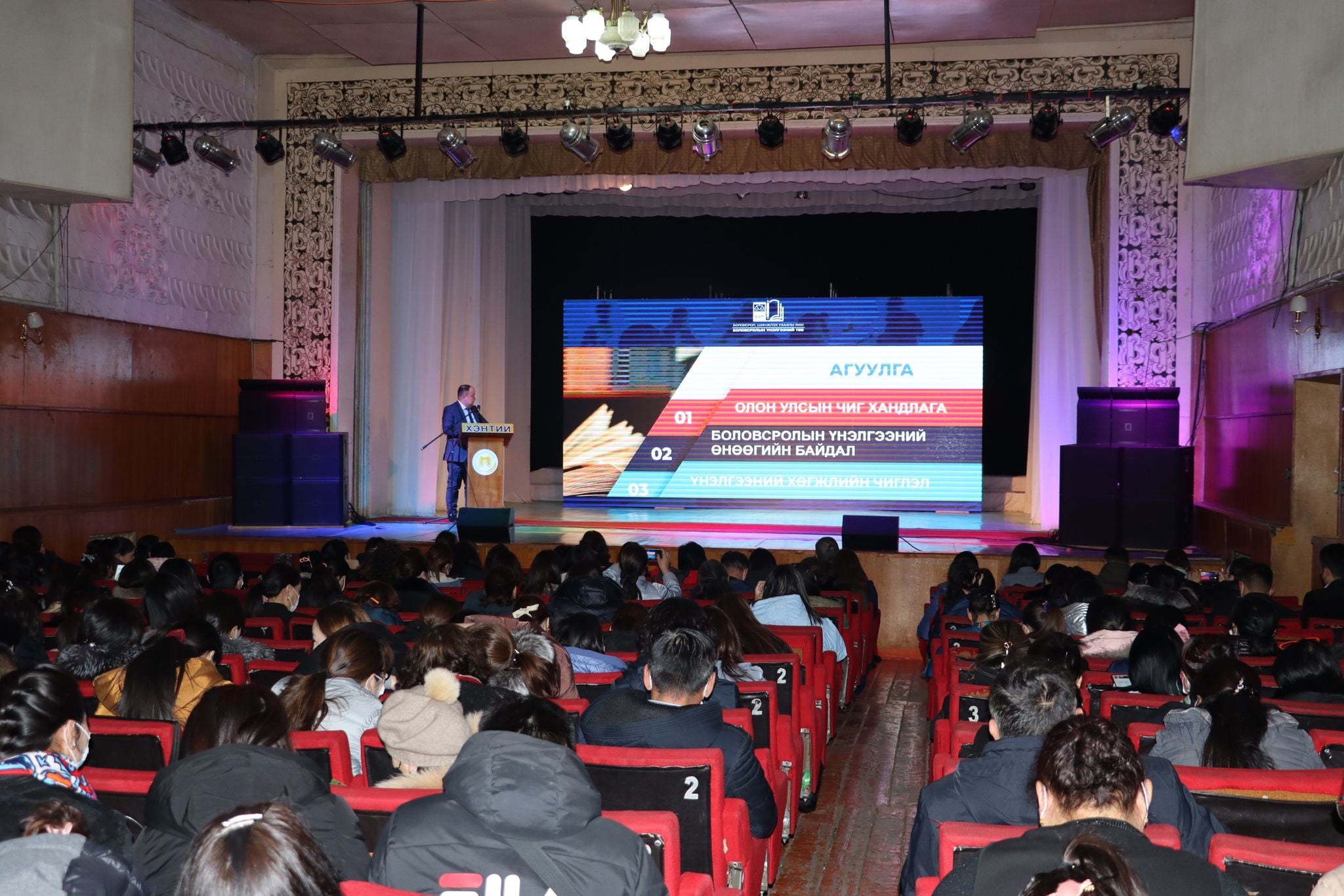 Хэнтий аймгаас сонгогдсон УИХ-ын гишүүдийн санаачилга, Боловсрол шинжлэх ухааны сайд Л.Энх-Амгалангийн дэмжлэгээр БҮТ-өөс оношлох үнэлгээний 5, 9, 12 ангийн монгол хэл, математикийн хичээлийн үр дүнг танилцуулах, хоцрогдолтой агуулгыг сайжруулах, арга зүйн шинэ санаа боловсруулах, ЭЕШ-ын хичээлийн үр дүнд шинжилгээ хийх зорилго бүхий “Суурь судалгааны үр дүнд суралцагчийн сурлагын амжилтыг дэмжих сургалт”-ыг Хэнтий аймагт 2022 оны 03-р сарын 04,05-ны өдрүүдэд зохион байгуулж байна. Сургалтад тус аймгийн боловсролын газрын мэргэжилтнүүд, ерөнхий боловсролын сургуулийн 200 гаруй багш, мэргэжилтнүүд хамрагдаж байна.