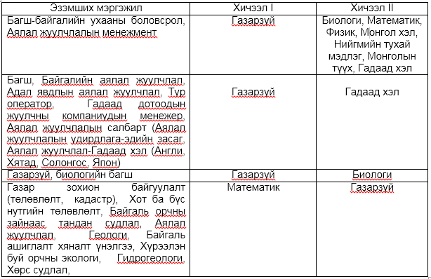 БСШУС-ын сайдын 2018 оны 04 дүгээр сарын 06-ны өдрийн А/194 тоот тушаалаар шинэчлэн батлагдсан “Оюутан элсүүлэх журам”-ын 2.2 дугаар зүйлд “Элсэлтийн ерөнхий шалгалт нь монгол хэл, математик, нийгмийн тухай мэдлэг, Монгол улсын түүх, англи хэл, орос хэл, хими, физик, биологи, газарзүйн хичээлийн I (заавал судлах) ба II (гүнзгийрүүлж сонгон судлах) гэсэн ялгамжтай агуулгад үндэслэн бэлтгэсэн тестийн болон бусад хэлбэртэй байна. Монгол хэл, бичгийн шалгалтыг элсэлтийн ерөнхий шалгалт өгөх бүх иргэн заавал өгнө” хэмээн заасан болно. Суралцагчид заавал судлах болон гүнзгийрүүлж сонгон судлах агуулгаас өөрсдийн ирээдүйд эзэмших мэргэжлийн чиглэлээс хамаарч хичээлээ сонгон Элсэлтийн ерөнхий шалгалтыг өгнө.