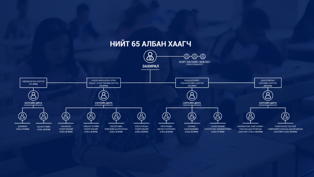 4. БҮТ-ийг хүний нөөцийн удирдлагаар хангах, ажилтнуудыг сургах, тэдний нийгмийн асуудлыг шийдвэрлэх асуудлыг зохион байгуулах. Хэлтсүүдийн болон албан хаагчдын ажлын үр дүнг үнэлж дүгнэх, урамшуулах, хариуцлага тооцох.