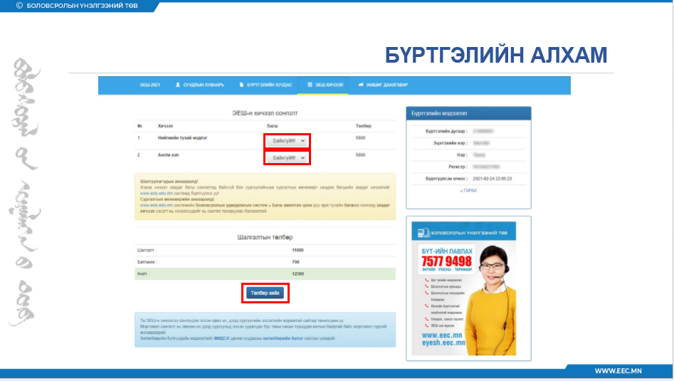 Засгийн газраас гаргасан шийдвэрийн дагуу 2021 оны 04 дүгээр сарын 10-наас 04-р сарын 25-ны өдөр хүртэл хатуу хөл хорио тогтоох болсонтой холбогдуулан Элсэлтийн ерөнхий шалгалтын... Дэлгэрэнгүй