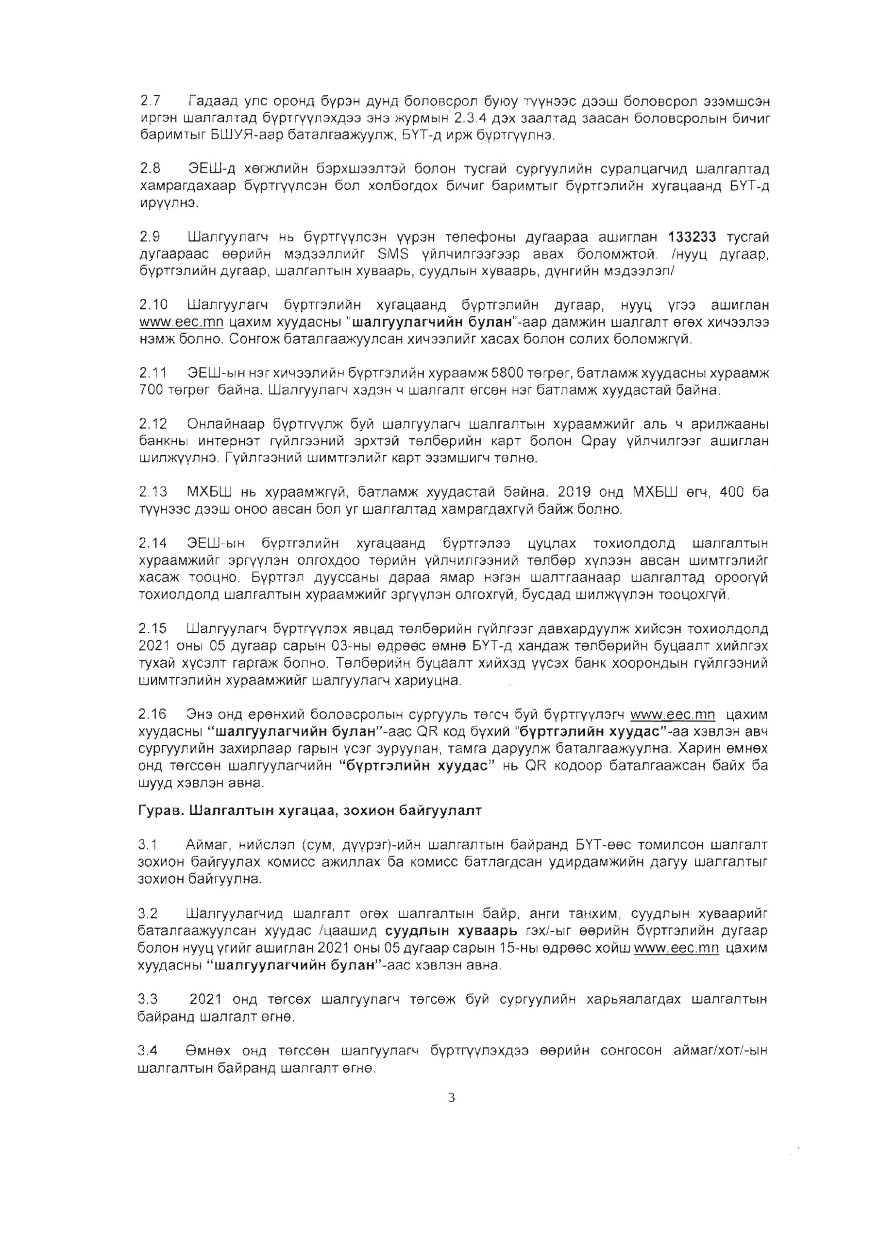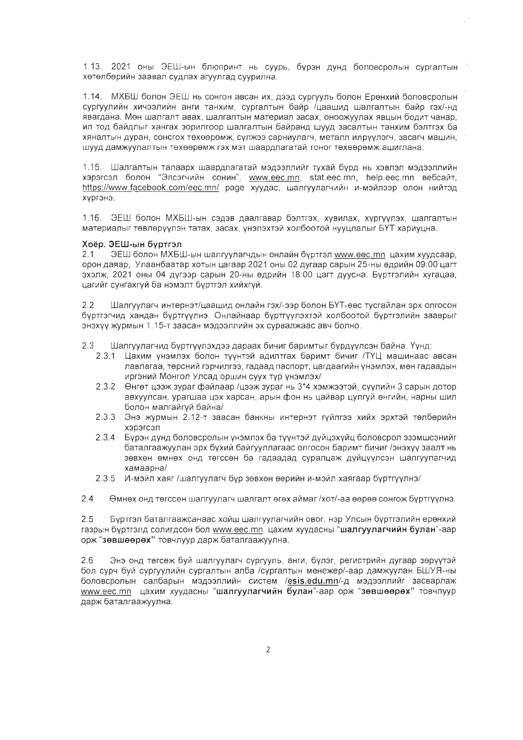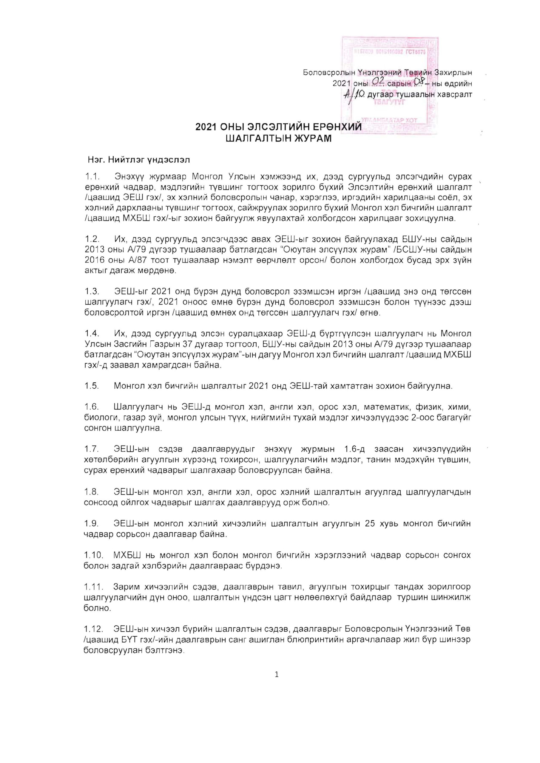 2021 оны элсэлтийн ерөнхий шалгалтын журам 2021-02-25 /Нийтлэсэнeec.mn / 3551 Share Post live-ээр мэдээлэл хүргэнэ Эх хэл бидний бахархал