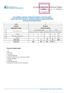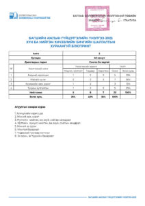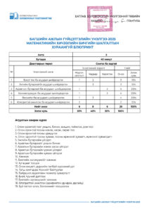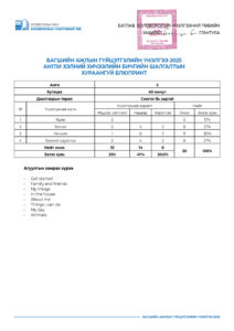 “Багшийн ажлын гүйцэтгэлийн үнэлгээ-2025” шалгалтын хураангуй блюпринт /5-р анги/ 2025-04-07 /Нийтлэсэнeec.mn / 12521 “Багшийн ажлын гүйцэтгэлийн үнэлгээ-2025” шалгалтын хураангуй блюпринт /5-р анги/ Share Post “Багшийн ажлын гүйцэтгэлийн үн... “Багшийн ажлын гүйцэтгэлийн үн...