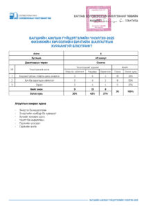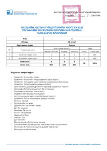 “Багшийн ажлын гүйцэтгэлийн үнэлгээ-2025” шалгалтын хураангуй блюпринт /6-р анги/ 2025-04-07 /Нийтлэсэнeec.mn / 14229 “Багшийн ажлын гүйцэтгэлийн үнэлгээ-2025” шалгалтын хураангуй блюпринт /6-р анги/ Share Post “Багшийн ажлын гүйцэтгэлийн үн... “Багшийн ажлын гүйцэтгэлийн үн...