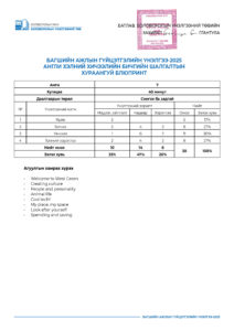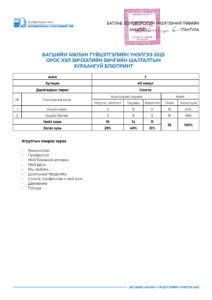 “Багшийн ажлын гүйцэтгэлийн үнэлгээ-2025” шалгалтын хураангуй блюпринт /7-р анги/ 2025-04-07 /Нийтлэсэнeec.mn / 17064 “Багшийн ажлын гүйцэтгэлийн үнэлгээ-2025” шалгалтын хураангуй блюпринт /7-р анги/ Share Post “Багшийн ажлын гүйцэтгэлийн үн... “Багшийн ажлын гүйцэтгэлийн үн...