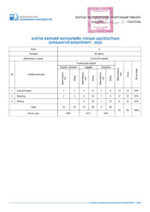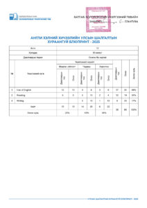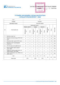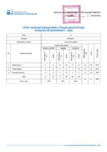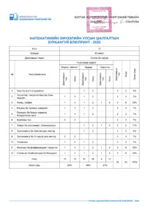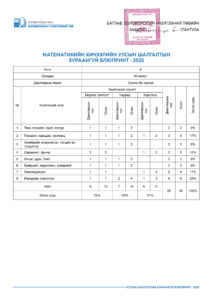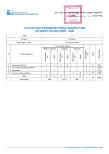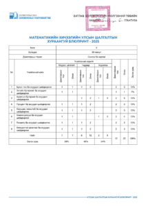 УЛСЫН ШАЛГАЛТЫН ХУРААНГУЙ БЛЮПРИНТ-2025 2025-04-23 /Нийтлэсэнeec.mn / 45054 УЛСЫН ШАЛГАЛТ-2025 5-р анги 9-р анги 12-р анги Share Post Хүүхдийн цэцэрлэгийн багшийн а... “Элсэлтийн шалгалт-2025&...