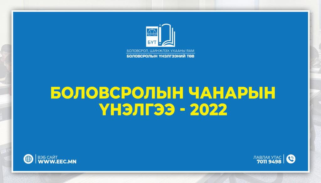 Мэдээлэл Read more БОЛОВСРОЛЫН ЧАНАРЫН ҮНЭЛГЭЭ-2022 ОНЫ СЭДЭВ 2022-11-15 / 46949 Боловсролын-чанарын-үнэлгээ – 2022-6-р анги татаж авах Боловсролын-чанарын-үнэлгээ – 2022-10-р анги татаж авах Боловсролын-чанарын-үнэлгээ – 2022-12-р анги татаж авах Дэлгэрэнгүй
