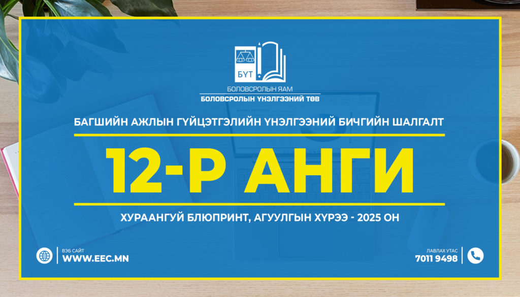Мэдээ, мэдээлэл Read more “Багшийн ажлын гүйцэтгэлийн үнэлгээ-2025” шалгалтын хураангуй блюпринт /9-р анги/ 2025-04-07 / 16552 “Багшийн ажлын гүйцэтгэлийн үнэлгээ-2025” шалгалтын хураангуй блюпринт /9-р анги/ Дэлгэрэнгүй