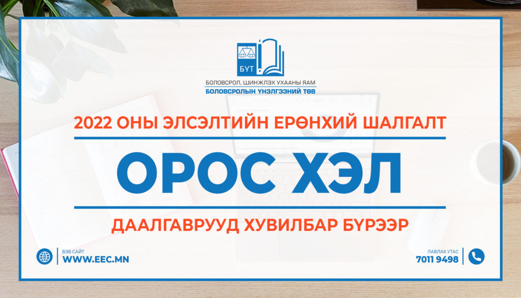 ЭЛСЭЛТИЙН ЕРӨНХИЙ ШАЛГАЛТЫН ДҮН, ОНООГ ШУУД МЭДЭЭЛЛЭЭ 2019-06-17 / 2775 Боловсролын үнэлгээний төв нь ЭЕШ-ыг ил тод, шударга, шуурхай зохион байгуулах ажлын хүрээндмэдээллийн технологийн дэвшлийг ашиглан “Шууд засалтын шилэн технологи” – ийг үйл ажиллагаандаа нэвтрүүлээд байна. Уг... Дэлгэрэнгүй