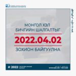 Зохион байгуулах хугацаа: 2022.04.11-2022.05.14