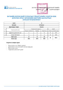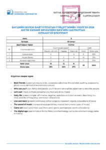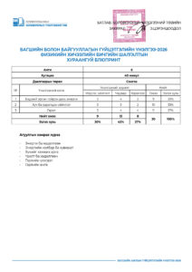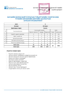 Багшийн болон байгууллагын гүйцэтгэлийн үнэлгээ-2026 /6-р анги/ 2026-04-28 /Нийтлэсэнeec.mn / 1779 / 0 Share Post Багшийн болон байгууллагын гүй... Багшийн болон байгууллагын гүй...