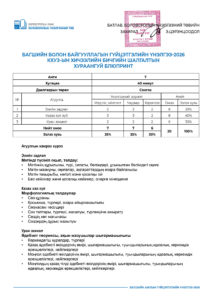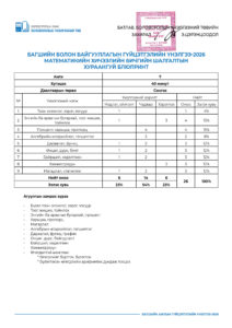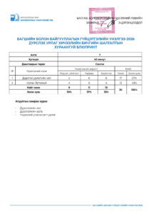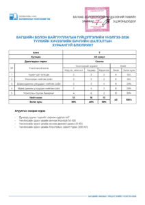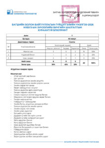 Багшийн болон байгууллагын гүйцэтгэлийн үнэлгээ-2026 /7-р анги/ 2026-04-28 /Нийтлэсэнeec.mn / 1101 / 0 Share Post Багшийн болон байгууллагын гүй... Багшийн болон байгууллагын гүй...