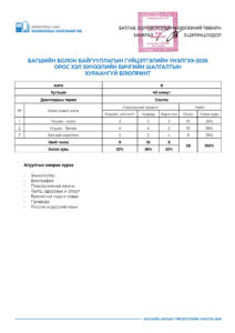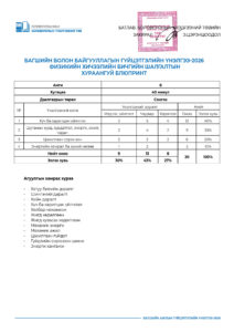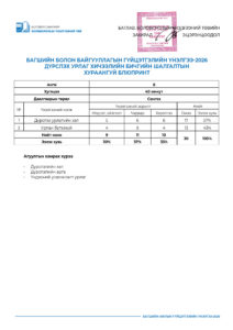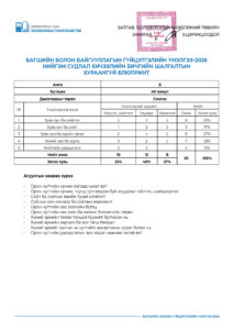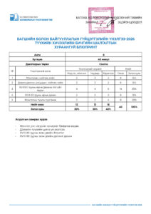 Багшийн болон байгууллагын гүйцэтгэлийн үнэлгээ-2026 /8-р анги/ 2026-04-28 /Нийтлэсэнeec.mn / 1158 / 0 Share Post Багшийн болон байгууллагын гүй... Багшийн болон байгууллагын гүй...