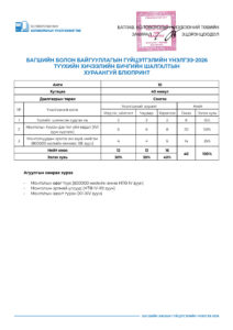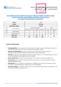 Багшийн болон байгууллагын гүйцэтгэлийн үнэлгээ-2026 /10-р анги/ 2026-04-28 /Нийтлэсэнeec.mn / 763 / 0 Share Post Багшийн болон байгууллагын гүй... Багшийн болон байгууллагын гүй...