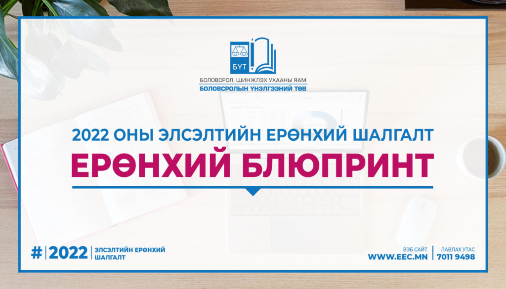 Мэдээлэл Read more 2022 ОНЫ ЭЛСЭЛТИЙН ЕРӨНХИЙ ШАЛГАЛТЫН ЕРӨНХИЙ БЛЮПРИНТ 2022-04-15 / 12254 Дэлгэрэнгүй