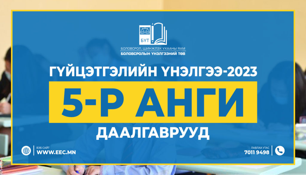Мэдээлэл Read more “Гүйцэтгэлийн үнэлгээ-2023” 5-р ангийн даалгаврууд 2023-05-26 / 65613 5-р анги Англи хэл татаж авах 5-р Англи хэл сонсох холбоос линк дээр дарж сонсоорой 5-р анги Дүрслэх урлаг, технологи татаж авах 5-р анги Математик... Дэлгэрэнгүй